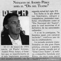 El Día Nacional del Teatro fue instituido por la ley número 20.153 del 26 de diciembre de 2006 y se fijó para su celebración el 11 de mayo, día del natalicio del director Andrés Pérez Araya.