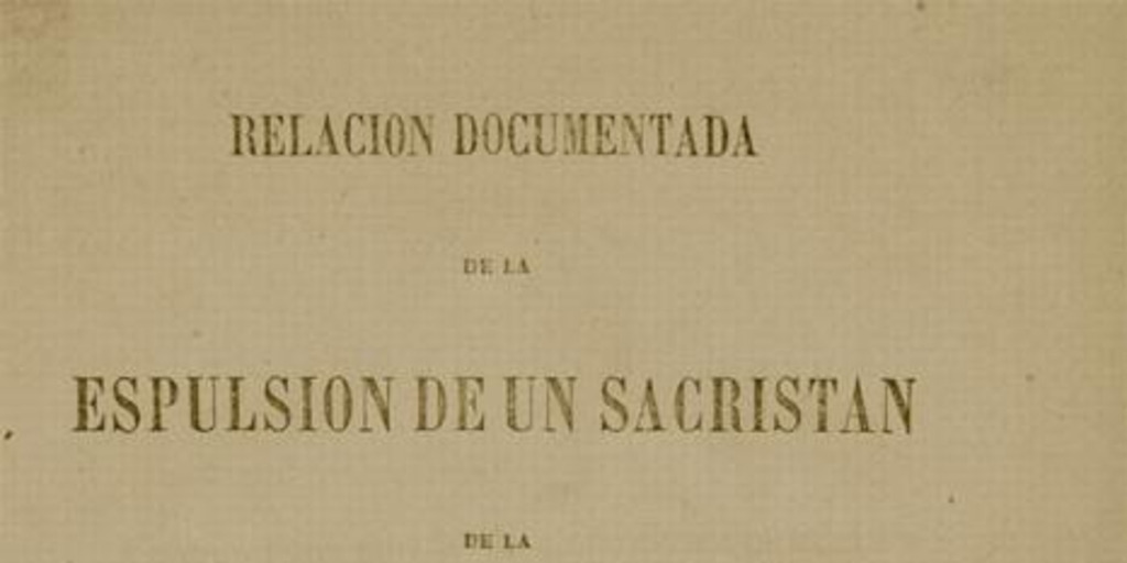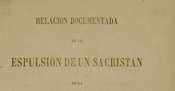 Relación documentada de la espulsión de un sacristán de la Iglesia Metropolitana de Santiago de Chile, i del recurso de fuerza entablado por el Arcediano i Doctoral de la misma
