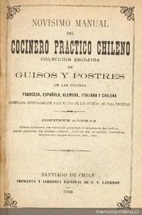 El Manual del cocinero práctico chileno es, según lo anuncia su portada, una "colección escogida de guisos y postres de las cocinas francesa, española, alemana, italiana y chilena, arreglada especialmente para el uso de las dueñas de casa chilenas". Se han seleccionado las recetas dedicadas a la cocina popular chilena, destacando las relativas a "fiambres y escabeches, con estupendas y olvidadas recetas para preparar: aves arrolladas, guachalomos salpresos, malayas, pepinos en vinagre, escabeche inglés, etc."