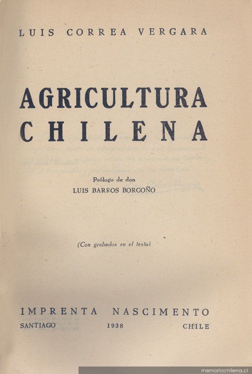 Agricultura chilena / Luis Correa Vergara ; prólogo de Luis Barros Borgoño. Santiago : Nascimento, 1938. 2 volúmenes