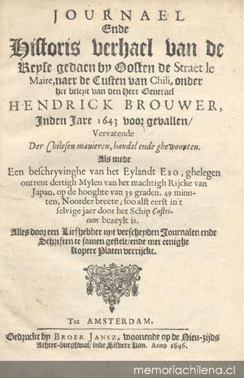 En 1646 se publicó en Amsterdam el Diario y relación histórica del viaje realizado por el Estrecho Le Maire hacia las costas de Chile, al mando del general Hendrick Brouwer en el año 1643.