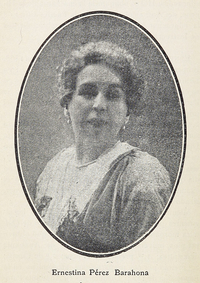 Ernestina Pérez Barahona nació el 8 de agosto de 1868 en Valparaíso. Hizo sus estudios en el Liceo Le Brun de Pinochet y los continuó con profesores en su casa. En 1883, recibió su título de Bachiller en Humanidades en la Universidad de Chile y rindió el examen del primer año de Medicina. Mientras fue alumna de esta carrera, obtuvo varios premios en los cursos que tomó. Se graduó de Bachiller en Medicina en 1885 y el 10 de enero de 1887 recibió su título de médico-cirujano -siete días después que Eloísa Díaz (1866-1950)-, año en que también aprobó el examen de Ginecología del profesor Víctor Körner (1856-1946), única mujer que consiguió aprobarlo (Zanelli López, Mujeres chilenas de letras. Santiago: Impr. Universitaria, 1917, p. 61).