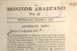 El Monitor Araucano. Santiago, Chile : Impr. El Estado, 1813-1814. 183 nos. n° 57, (19 ago. 1813), p. 215-216