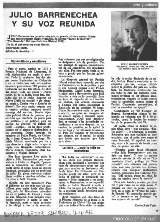 Qué Pasa. Santiago : Segunda Editorial Portada, 1971- (Santiago : Editorial Antártica) volúmenes, número 229, (11 septiembre 1975), página 59