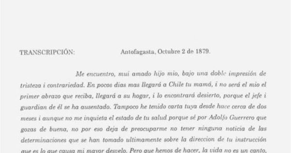 Carta, 1879 oct. 2, Antofagasta a Salvador Vergara, Ginebra