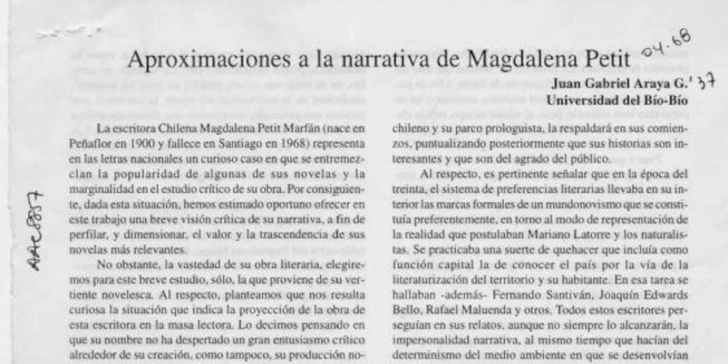 Cauce / Grupo Literario Ñuble. Chillán : El Grupo, 1964- (Chillán : La Discusión) v., no. 69, (primer semestre 1995), p. 25-27