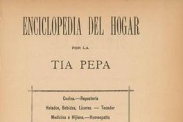 Enciclopedia del hogar : cocina, repostería, helados, bebidas, licores, tocador, medicina e hijiene, homeopatía economía doméstica / por la Tía Pepa. 2a serie. Santiago : Imprenta i Encuadernación Esmeralda, 1899. 365 páginas