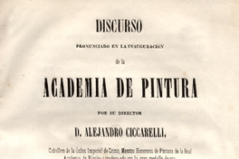 Discurso pronunciado en la inauguración de la Academia de Pintura por su director Alejandro Ciccarelli : seguido de la contestación en verso leida por D. Jacinto Chacón