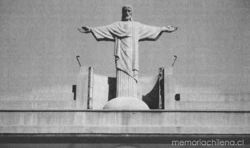 Cristo de la fachada de la Casa Central de la Universidad Católica de Chile, hacia 1932