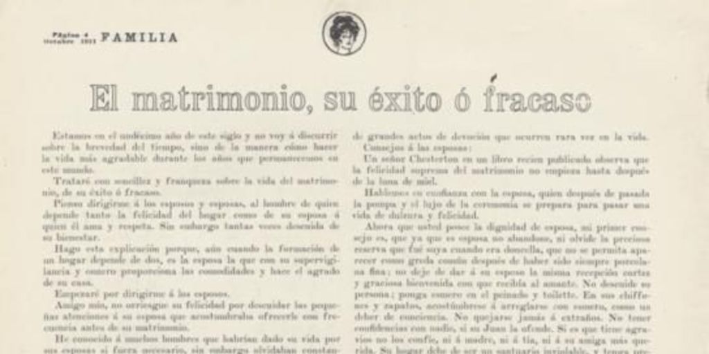 Familia. Santiago : Zig-Zag, 1910-1928, volúmenes, (octubre 1911), página 4