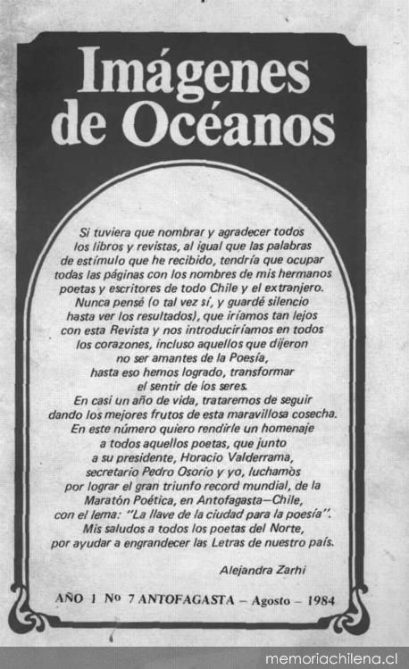 Imágenes de océanos. Antofagasta : [s.n.], 1983- (Antofagasta : Univ. del Norte) v., año 1, n° 7, (ago. 1984)
