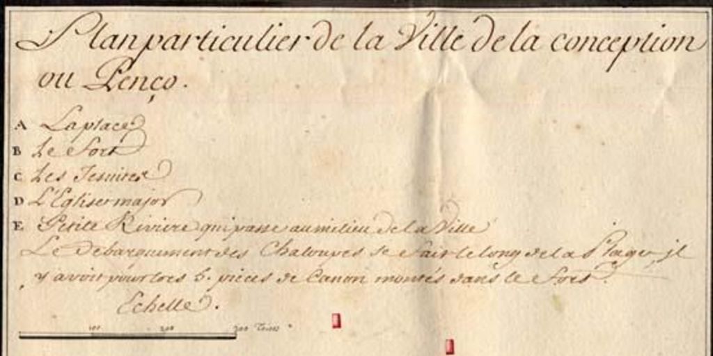 Título original: Plan particulier de la Ville de la Conception ou Penco, 1712