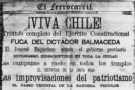 Portada del periodico informando el término de la Guerra Civil de 1891