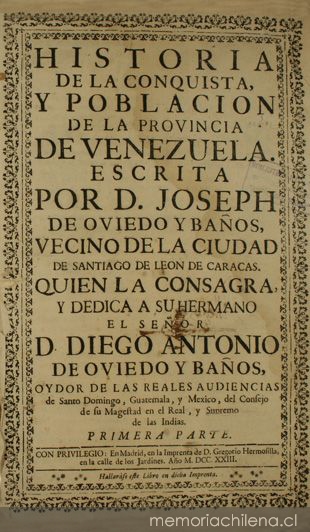 Historia de la conquista y poblacion de la Provincia de Venezuela : primera parte