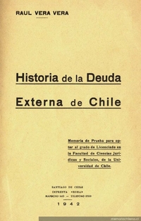 Historia de la deuda externa de Chile : memoria de prueba. Santiago :Impr. Roma,1942. 100 p.