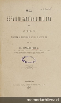 El Servicio sanitario militar en Chile : su historia, su organización : lo que es i lo que debe ser. Santiago :Impr. Mejía ,1896. 516 p. ;25 cm.